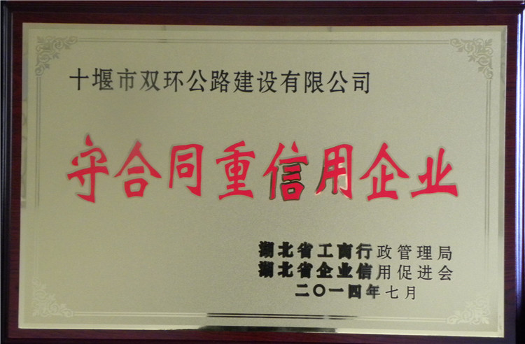 連續(xù)多年評(píng)為“AA級(jí)公路建設(shè)市場(chǎng)信用等級(jí)”,榮獲省交通運(yùn)輸廳“十佳參建單位”“先進(jìn)集體”等稱(chēng)號(hào),中共十堰市委、市政府“最佳文明單位”“先進(jìn)組織”,省公路局“全省公路交流廉政文化建設(shè)示范單位”,省和市工商局“守合同重信用企業(yè)”等多個(gè)榮譽(yù)稱(chēng)號(hào)。